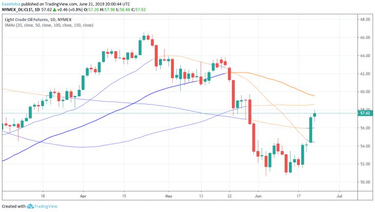 Crude oil continues the trip north adding more than 0.60 percent to $57.52 as the dollar denominated assets buying frenzy continues. Central bank easing both from RBA, ECB and FED, along with an escalation in USA – Iran tension leads to stronger demand for crude oil. A report that President Trump approved military action against Iran, but then pulled back from launching the attacks weighed on sentiment. The Energy Information Administration announced earlier this week a larger than analyst’s forecasts in USA crude oil supplies during the previous week.