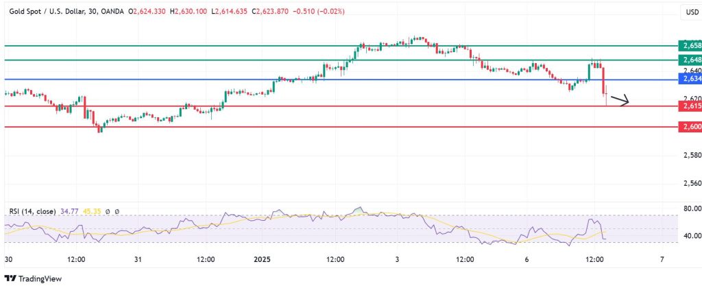Gold price pivots at $2,634 and the momentum indicator calls for further an extended downside if resistance persists at that level. Immediate support is likely to be at $2,615, but a stronger downward momentum could break below that level and test $2,600.
