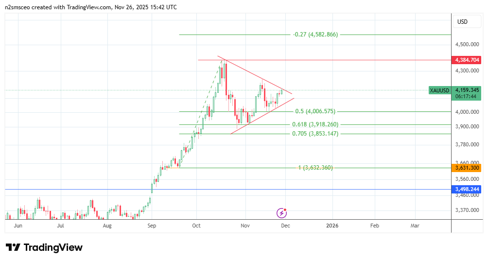 Gold prices resumed their upward move after recent US data fueled the increased expectations of a lowering of US interest rates by the US Federal Reserve in its December 2025 meeting. Lower interest rates make non-yielding assets such as gold and silver more appealing to investors.