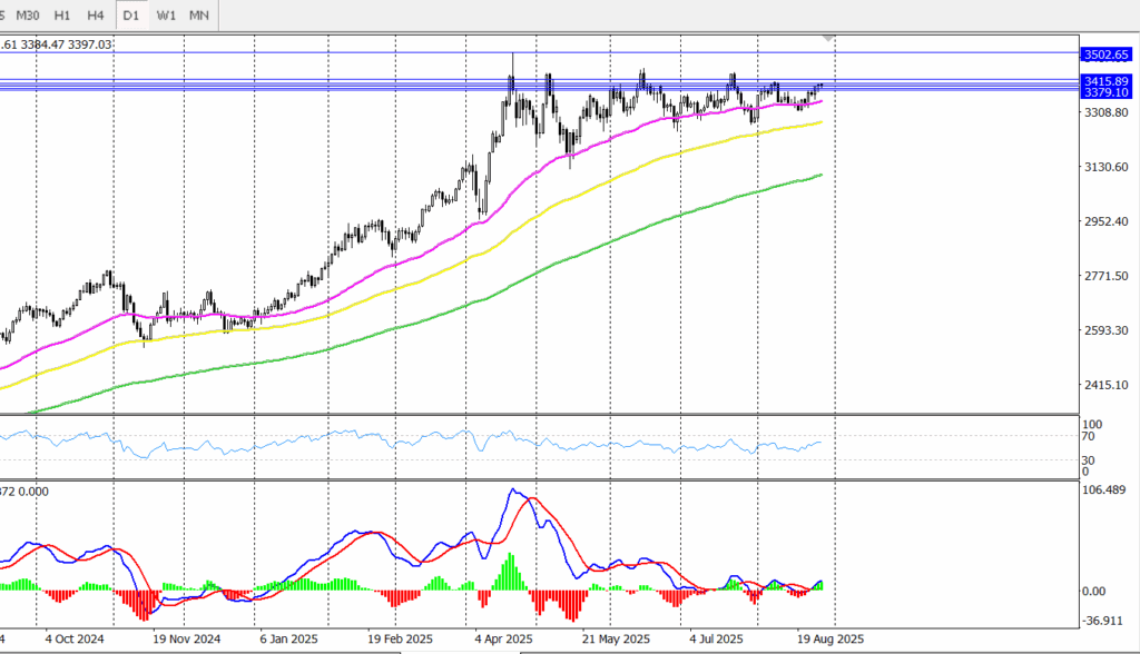 A clear 1-hour close above the psychological level $3401 would open the door for further upside, potentially reaching a new high to $3,408, a level not tested since August 8.