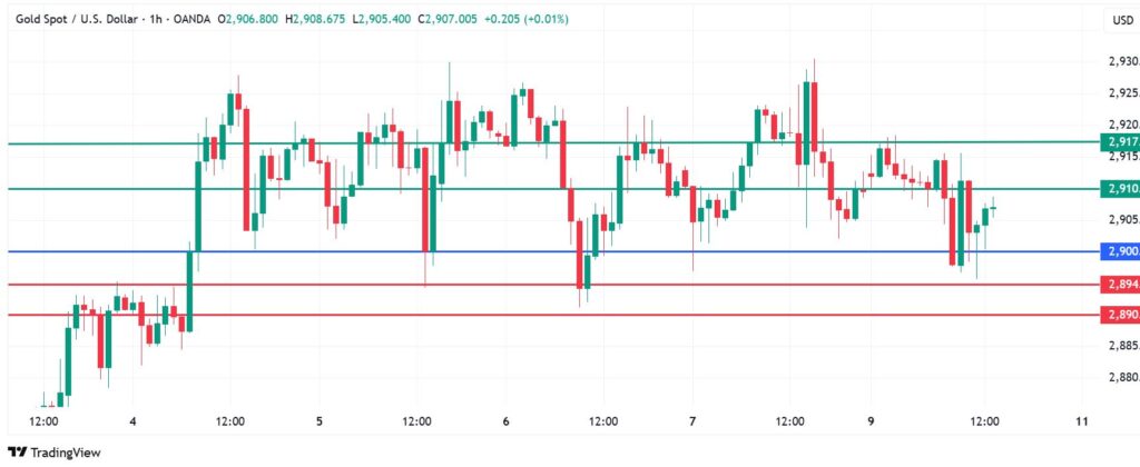 Gold price pivots at $2,900 and action above that level will favour the upside to prevail. That will likely meet the first barrier at $2,910. However, an extended control by the buyers could extend gains to break past that level and potentially test the second resistance at $2,917.