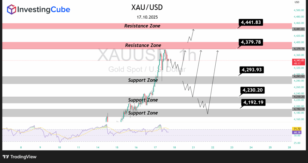 - Support levels: $4,293 has become the first support line after Friday’s action. Below that, $4,230 and $4,192 are key. Breaking $4,192 would be the first real sign of fatigue.