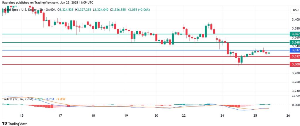 Gold price traded inched up on Wednesday with investors keeping off aggressive bets amid the first 24 hours of ceasefire in the Middle East. The XAUUSD pair was at $3,326 per ounce at the spot market, up by 0.02% in the European session at press time. The US dollar index is still near ten-day lows, with the DXY index at 98.08 at the time of writing. However, yields on benchmark 10-year treasury bonds were up by 5 basis points, providing support to the greenback.