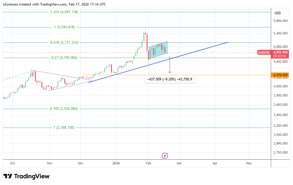 - Next support: 4709 (26 January low and 27% Fibonacci extension)