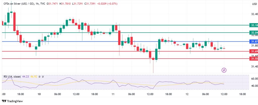 Silver price pivots at $31.87 and resistance at that level signals bearish control. The metal will likely move lower to find the first support at $31.69. However, a stronger downward momentum could break below that level and test the second support mark at $31.55.
