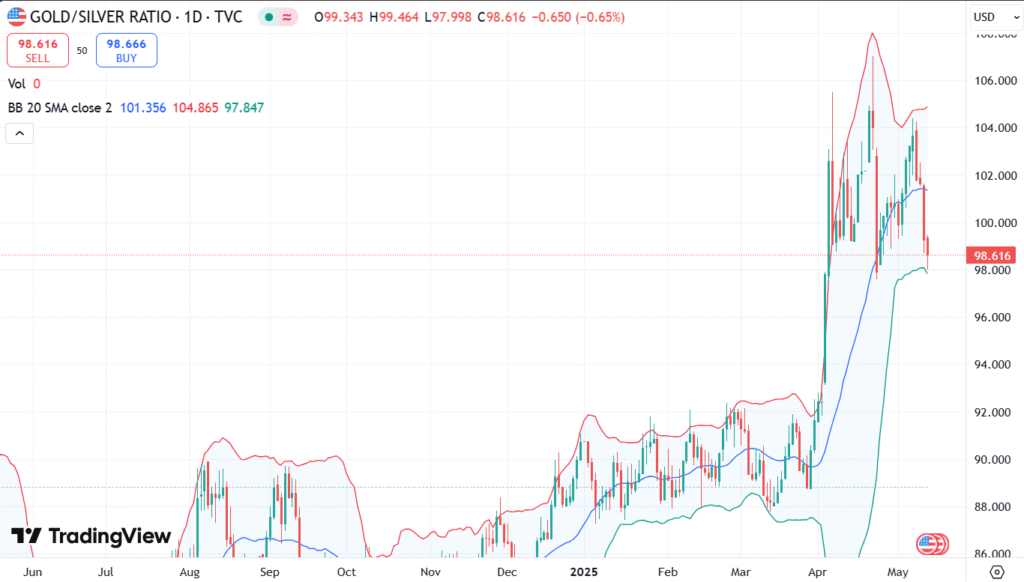 This ratio tells the investors how many ounces of silver it takes to buy one ounce of gold. A steadily increasing ratio might suggest that gold is becoming more expensive than silver, while a decreasing ratio could indicate the opposite.