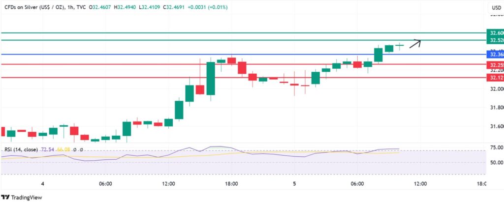 Alternatively, the sellers will take control if the price moves below the pivot level. In that case, support is likely to come at $32.25. An extended downward momentum will break below that level and invalidate the upside narrative. In addition, it could potentially send silver price to the second support at $32.12.