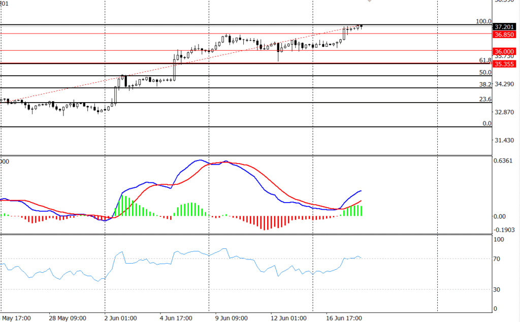 Any corrective action in the near term will be considered a new opportunity for the buyers. The XAGUSD will be limited between the $36.85- 36.90 area. Any breakdown in this area may expose silver prices to reach lower levels toward the support line of $35.35, reaching a lower support at $36.00. Any break below the support level of $36.00 could pave the way for some downside in the near term.