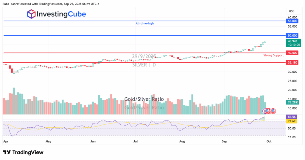 Technically, the XAG/USD has been consolidating above the 50-day, 100-day, and 200-day moving averages since June 2025. The MACD indicates strong bullish momentum on the daily chart. The RSI reached the 80 level, suggesting silver is overbought, and a correction could occur for profit-taking.