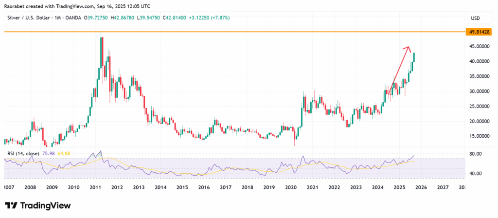 The weak jobs statistics in August—NFP only adding 142,000 jobs—made people bet on big rate cut. The markets were expecting a 50-basis-point decrease at the September FOMC meeting. This dovish shift makes the US dollar weaker and real yields lower, which makes assets that don’t pay interest, like silver, a great way to protect against inflation and a safe place to put your money.