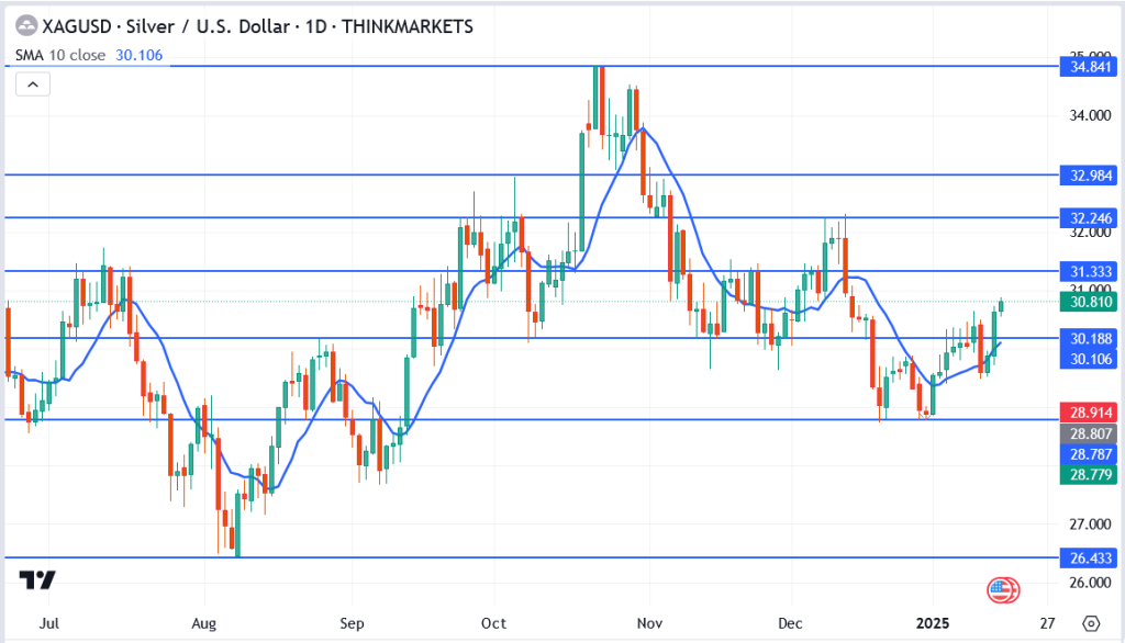 Silver is proving its strength as investors navigate a whirlwind of economic uncertainties. With inflation concerns and a potential Fed pause on the horizon, the metal is catching the eye of traders seeking stability. If prices push past $31.33, silver could shine even brighter, marking the start of an exciting new chapter in its rally. As the markets unfold, all eyes remain on silver’s next move.