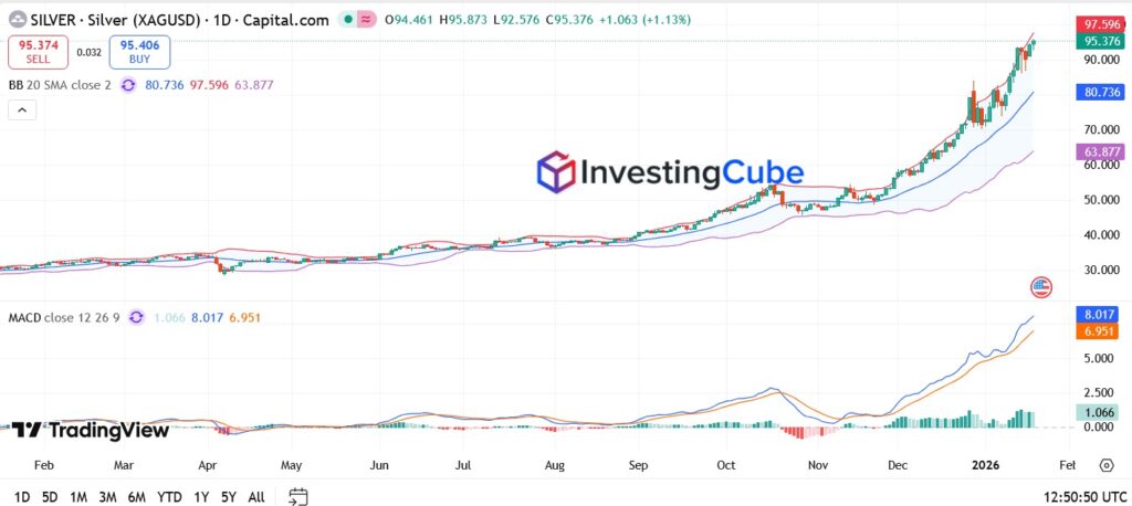 With silver now firmly above $95, the $100 level has become the dominant psychological target. Round numbers matter in momentum-driven markets, and $100 is likely to attract both trend followers and profit-taking activity.