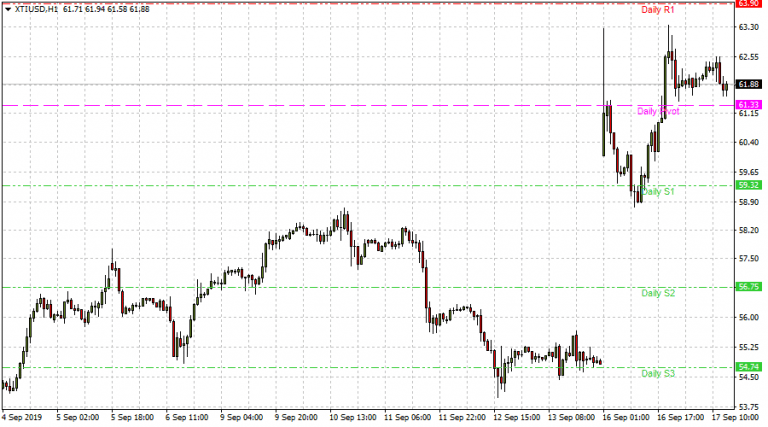 The Saudi Energy Minister, Prince Abdulaziz bin Salman, is expected to share more information in a press conference at 17.15GMT on Tuesday. This event could provide a near-term trigger for crude oil prices as questions will no doubt be asked of the current state of Saudi’s oil, possible recovery time for output deficit as well as any possible responses to the attacks.