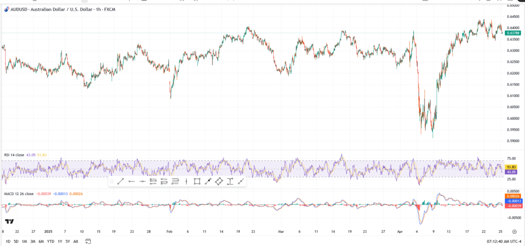 AUD/USD extended its upside momentum today, climbing above 0.6370, as the USD weakened across the board. The move marks a solid rebound from the sharp April dip, with the bulls now eyeing a break above the 0.6400 handle, a level that has capped several recent advances.