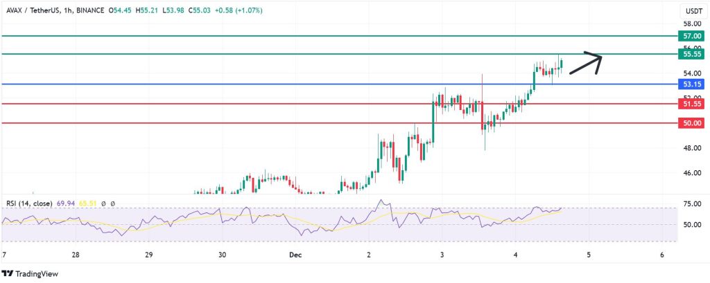AVAX price pivots at $53.15. Action above that level will signal bullish control. Otherwise, the sellers will be in charge. With the bulls in control, AVAX price will likely encounter the first barrier at $55.55. However, extended control could push the price further up to test $57.00.