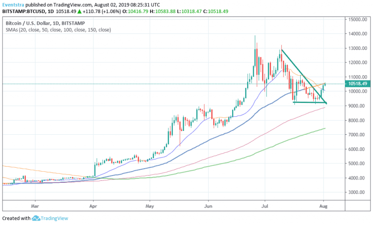 The BTCUSD technical picture is bullish the last days after BTC breached the downtrend line which started in July 10th. Bitcoin has established a strong support at 9,250 zone. Bitcoin traders are very nervous as the volatility increases and BTCUSD trades above and below the 10,000 mark. Immediate support for bitcoin stands at 10,073 the 20 day moving average while more bids will emerge at 2,250 zone. On the upside strong resistance now stands at 11,100 the high from July 20, while I expect extra pressure from sellers at 11,848 the high from July 13. I expect bulls to add to long positions if BTC breaks above the daily high (10,583), the take profit target must be set at 11,100 while a protective stop must be placed at 10,318 the today’s low. Bears can take a bet and enter a short position if BTC breaks below 10,300 mark; Shorts can target the 9,250 zone while a strict stop loss should be placed at 11,000.Don’t miss a beat! Follow us on Twitter.