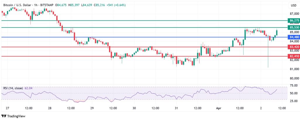 Bitcoin price stayed stable on Wednesday, rising marginally to stay above the psychological support at $85k. The coin traded at $85,216 at the time of writing, up by 0.6% on the daily chart. BTC has long been touted as “digital gold”, but has ironically suffered the risk aversion triggered by the ongoing global trade tariff war.