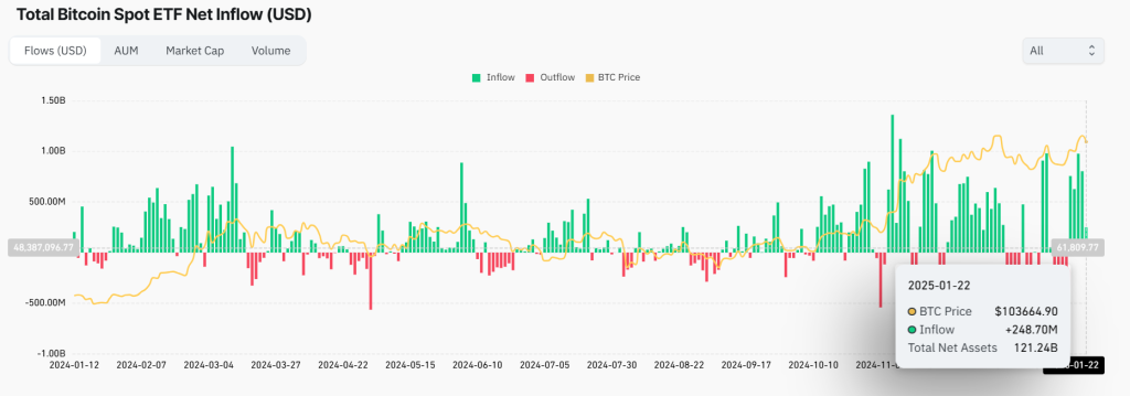 Also, Bitcoin’s ETF performance remains strong, and have recorded net positive inflows in the last five successive trading sessions. According to Coinglass data, Bitcoin spot ETFs had $247.7 million worth of inflows on Wednesday. That affirms strong interest by institutional investors and continuation of the trend will support recovery by Bitcoin price.