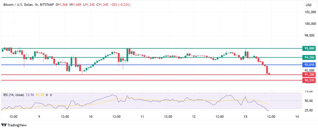 Bitcoin price pivots at $93,010 and an extended resistance at that level will favour control by the sellers. Immediate support will likely be at $91,300, but an extended downward momentum could break below that level and test $90,300.