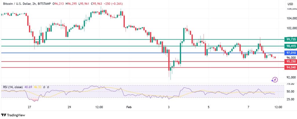 Bitcoin price pivots at $97,010 and resistance at that level signals control by the sellers. Immediate support will likely be at $95,250. However, an extended downward momentum will break below that level and target the second support at $94,040.