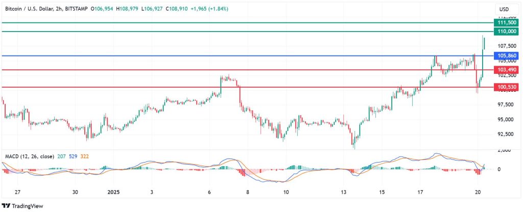 Bitcoin price rose to new all-time highs of $109,356 on Monday, on the day when Donald Trump was set to take the oath of office as the 47th US President. The crypto coin has been on a strong upward momentum since Trump won the November 2024 elections and is perceived to be headed to higher highs under his regime.