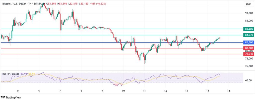 Bitcoin price momentum has its pivot at $82,300 as seen on the chart below. The upside will likely prevail if action stays above that level. With the buyers in control, the coin is likely to head higher and encounter the first resistance at $84,270. However, a stronger momentum will break above that level and could potentially test the second resistance at $85,880.