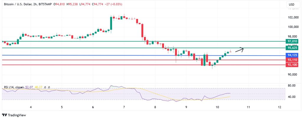 Alternatively, BTCUSD momentum will shift to the downside if it breaks below $94,250. If that happens, immediate support is likely to be at $93,110. Breaking below that level will invalidate the upside narrative. Also, that could pave the way for the BTC price to test $92,100.