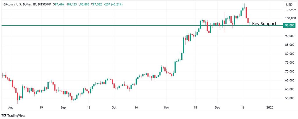 The $96,000 mark has been a key support level for Bitcoin price since late November. Therefore, action above that point could be a sign of a correction, with a high potential for a continuation.