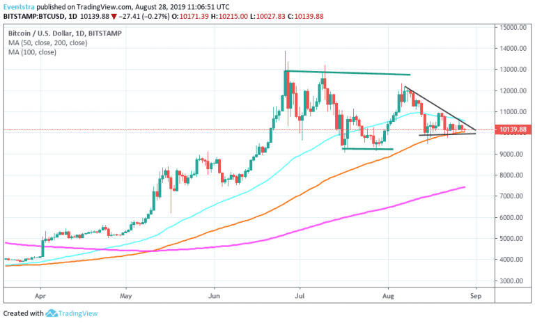 Βitcoin – BTCUSD is trapped between the 50 and 100-day moving average for the last two weeks. As of writing BTCUSD gives up 0.53% at 10,125 with capitalization now over 181.6 billion while the market capitalization of the top 100 cryptocurrencies stands above 263.6 billion, today’s BTC volume is 13.6B.