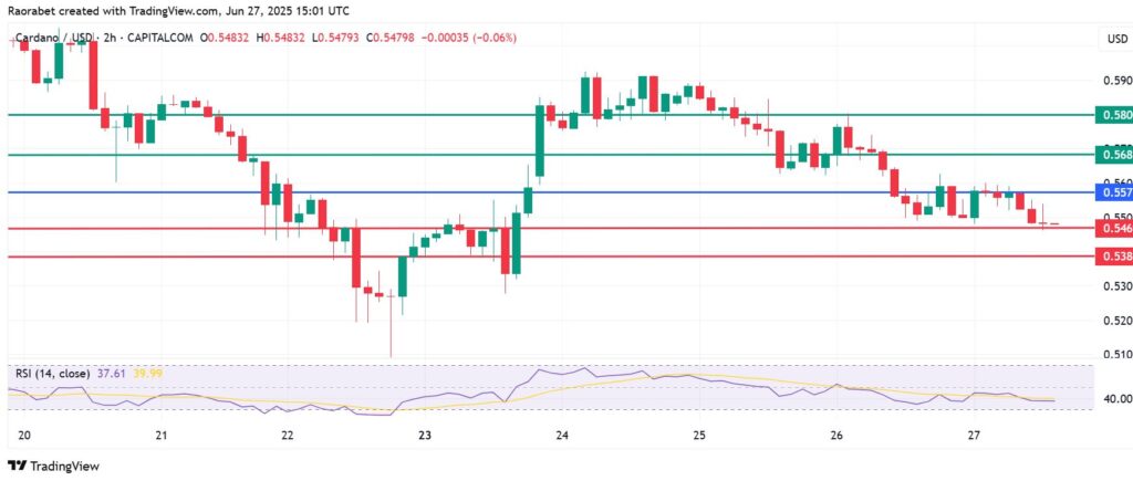 Cardano price momentum is struggling to protect the $0.550 support as it stays on course to register the third successive daily loss. The ADAUSD pair traded at $0.552 as of press time, up by a marginal 0.26%, with the 24% drop in trading volume signaling a weakening upside momentum. The crypto coin’s fundamentals are weak relative to the broader crypto market, denoted by its 0.44 correlation with market bellwether, Bitcoin.