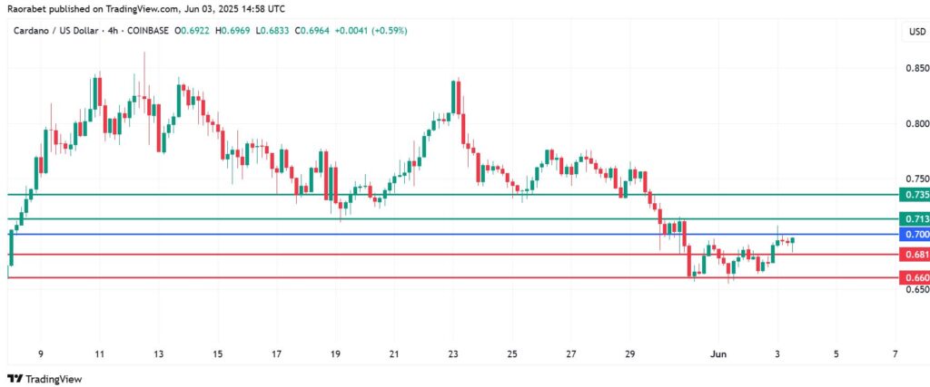 Conversely, action above $0.700 will shift the momentum to the upside. That will likely see the first resistance encountered at $0.713. The downside narrative will be invalid if the price breaks above that level. That could also clear the path for further gains to test $0.735.