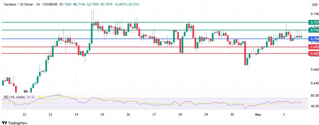 On the other hand, the momentum could shift to the downside if ADAUSD breaks below $0.704. That will likely see the first support established at $0.692. The upward narrative will be invalid if the price breaks below that level. Also, such momentum could extend the decline to test the second support at $0.682.