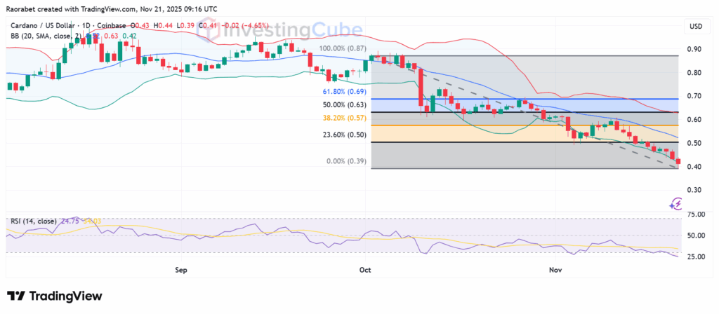 ADA price daily chart as of November 21, 2025 with support and resistance levels. Created on TradingView