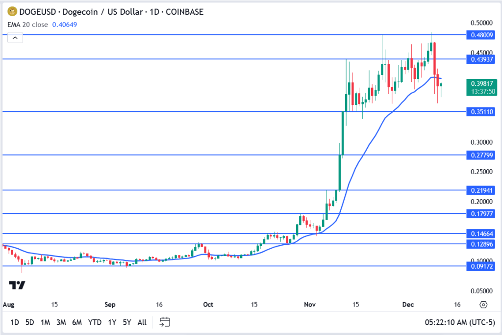 A glance at the chart shows the critical levels Dogecoin needs to break to regain momentum:
