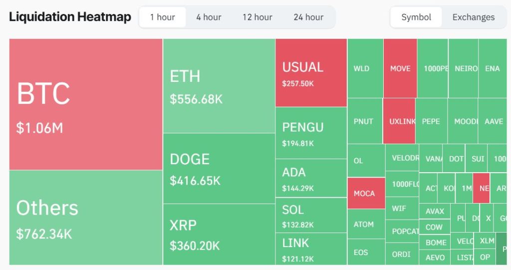 According to Coinglass, Dogecoin was the third-most-liquidated crypto asset in the hour leading up to this writing, after Bitcoin and Ethereum. DOGE had $416.65K worth of long liquidations, signaling investors’ unwillingness to hold on to the asset for a longer period. That could invite substantial downward pressure on Dogecoin price if the trend continues.