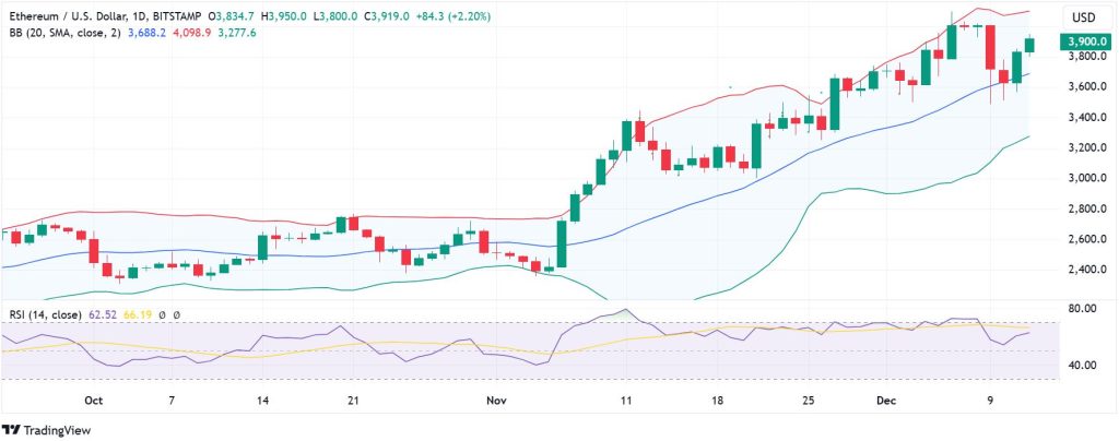 Ethereum price rose for the second successive day on Thursday, extending its gains by 2% at the time of writing to trade at $3,920. ETH is attempting another go at $4,000, a key psychological level at which it faced rejection in the last five days. Ethereum’s resurgence comes as the wider crypto market recovers, with the capitalisation having risen by more than $300 billion in the last 24 hours.