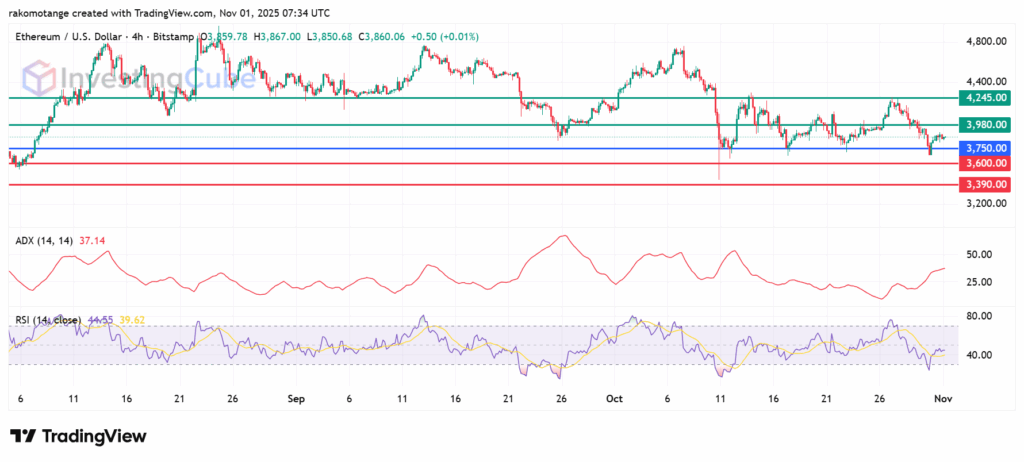 This week has not been easy for Ethereum. It fell below the crucial $4,000 level after touching highs of about $3,979 late last week. As of early November 1, it had clawed its way back up to around $3,850.
