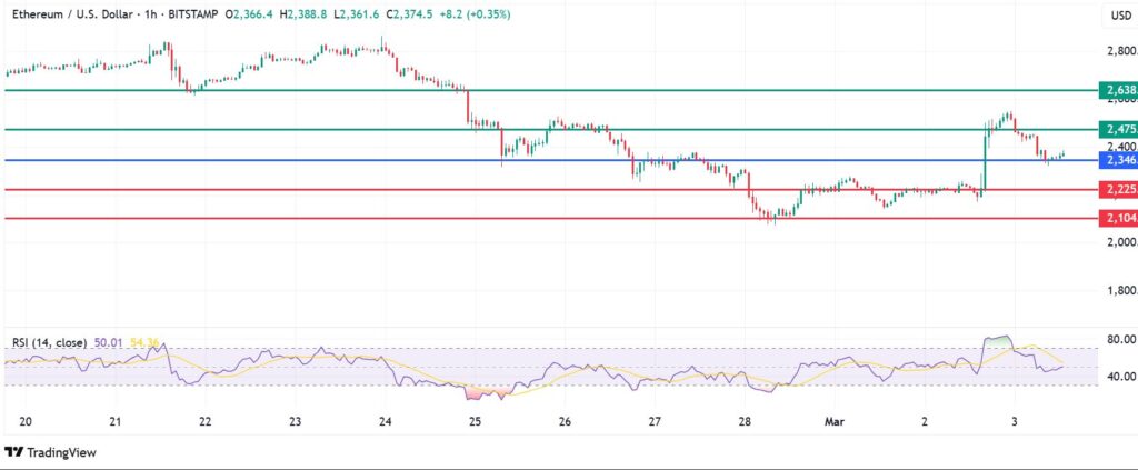 Ethereum price declined on Monday as investors took profit following Sunday’s double-digit rise. The crypto coin was at $2,366 and down by 6.2% on the daily chart at press time, subdued by underlying bearish sentiment tied to concerns over global trade tariff war.