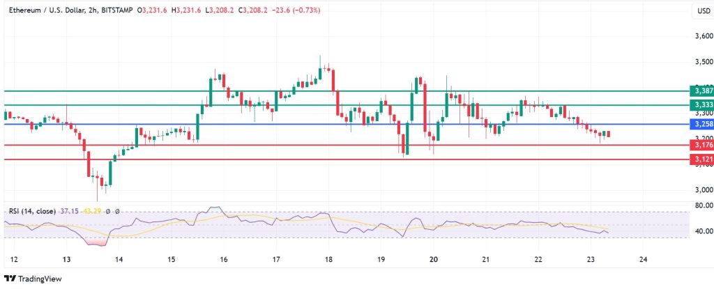The momentum on Ethereum price leans to the downside and the sellers will likely stay in control if resistance persists at $3,258 pivot. The coin will likely find initial support at $3,176. However, a stronger bearish momentum could break below that level and take it to the second support at $3,121.