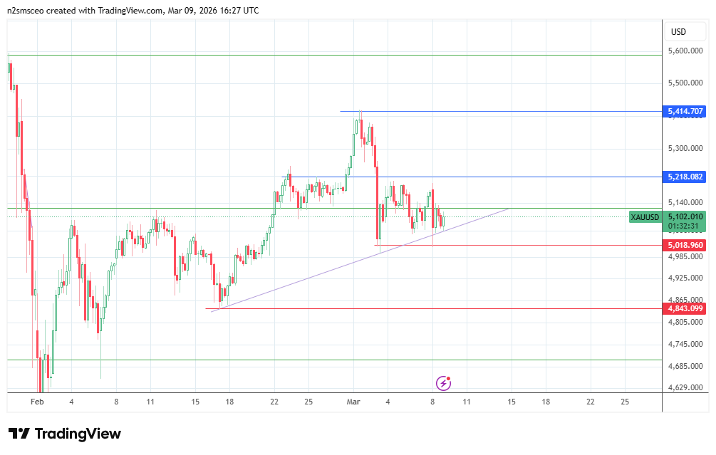 Gold price: As of writing on 9 March, the gold price has pulled back slightly from above $5100 and now trades around $5082. This is due to overnight strength in the US Dollar, as safe-haven demand followed the sharp spike in oil prices.