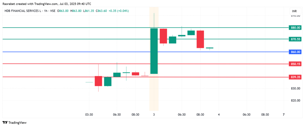 The high trading volume and consistent buying interest signals growing interest in HDB share price beyond the IPO hype. Furthermore, the broader equities market is currently experiencing significant volatility, affirming strong conviction among institutional and retail investors. The company’s fundamentals are doing the heavy lifting, with its strong loan book, and hold of rural populations projecting its business model as stable and scalable. On the technical front, a break above the ₹870 barrier strengthens the upside traction.
