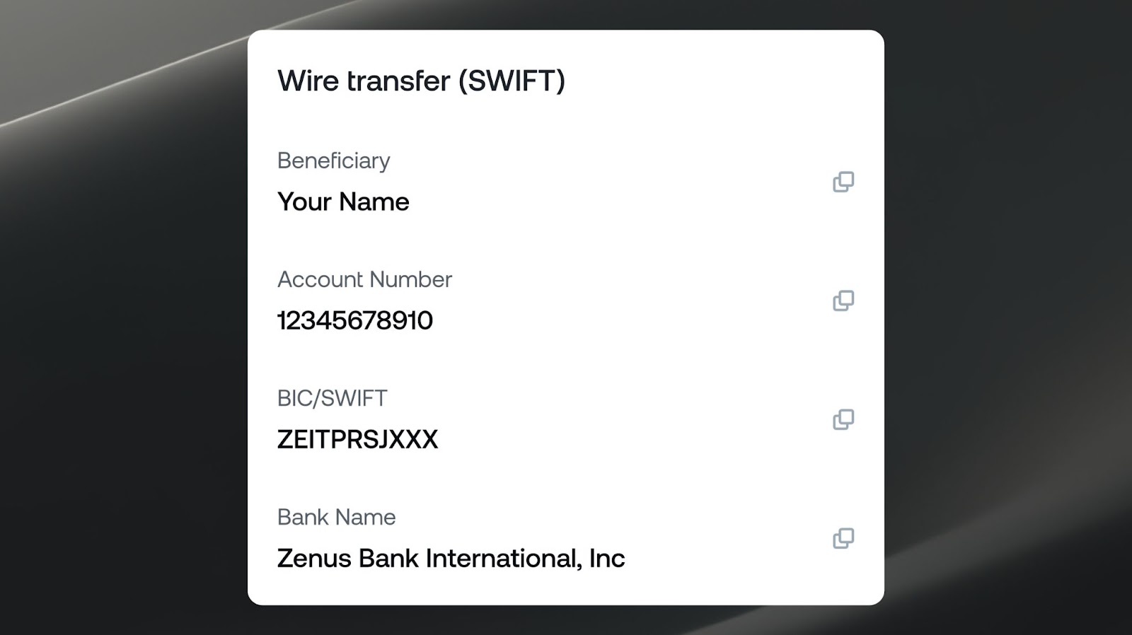 - Effortless Transfers: Personal USD accounts, held in clients’ names allow direct USD operations to and from their account, ensuring fast and easy access to funds.
