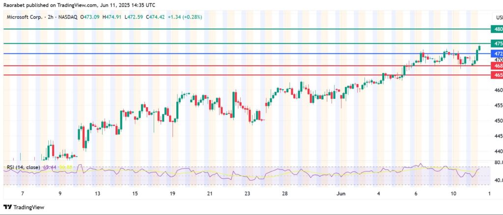 The momentum on Microsoft stock price signals the likely continuation of the upside above $472 pivot mark. That momentum will likely encounter the first barrier at $475.However, an extended control by the bulls could break above that level and clear the path to test $480.