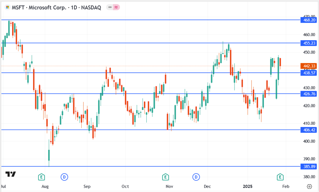 $426.76 – A breakdown here could lead to deeper pullbacks.