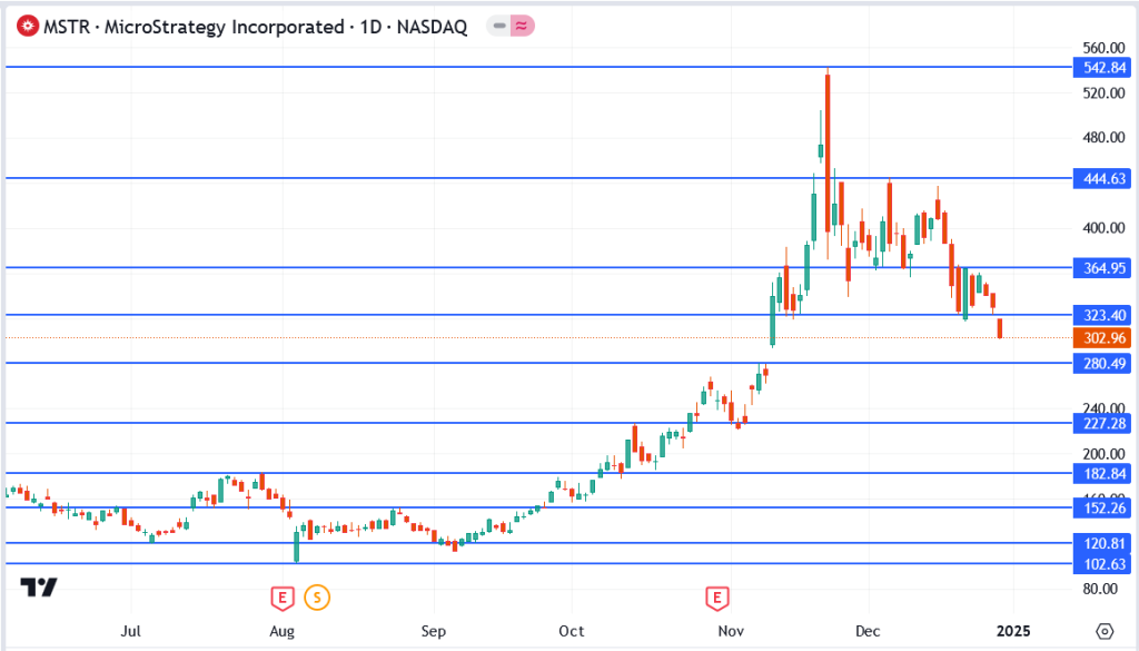 The MSTR stock price may continue to feel pressure as long as Bitcoin does not initiate a lasting recovery. Traders looking for short-term chances should monitor for a dip below $302.96 or a positive breakout above $323.40. Long-term investors could view this decline as a chance to buy, particularly if Bitcoin starts a new surge in 2025.