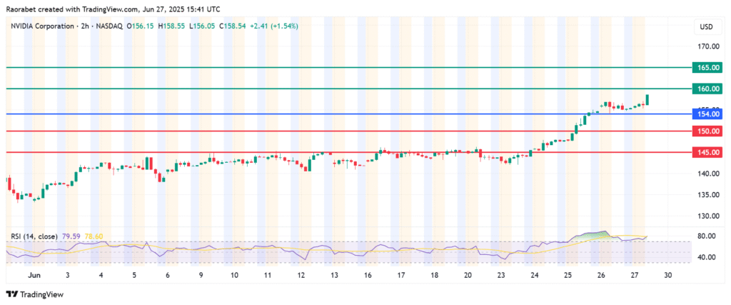 Nvidia stock price pivots at $154 and the momentum calls for further upside. The stock will likely meet initial resistance at $160. However, a stronger momentum will clear that barrier and go higher to meet the next resistance at $165.
