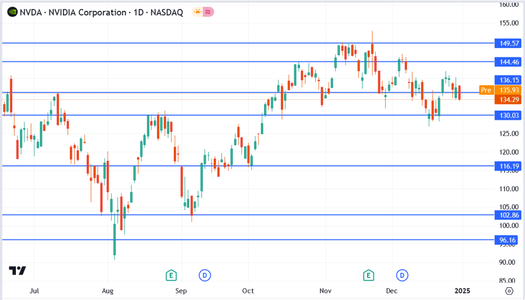 - $136.15 – A short-term barrier where the stock has faced selling pressure.