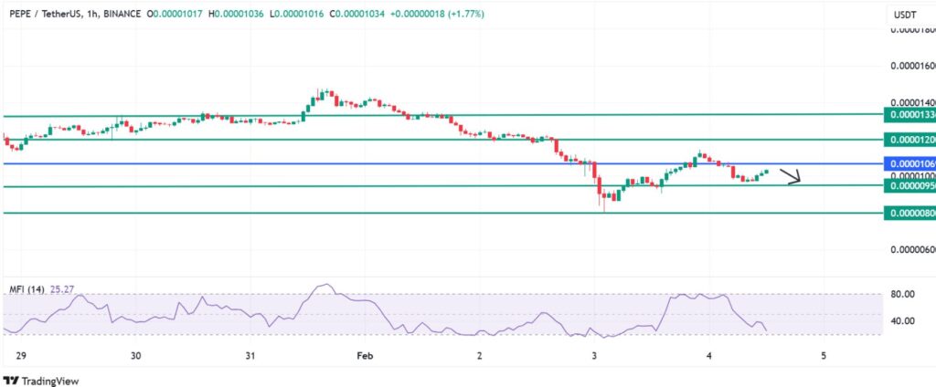 Conversely, the momentum will favour the upside if the price action breaks above $0.0000106. That will likely meet the first resistance at $0.0000120, above which the downward momentum will be invalid. Also, such momentum could potentially send the price higher and test the second resistance at $0.0000133.