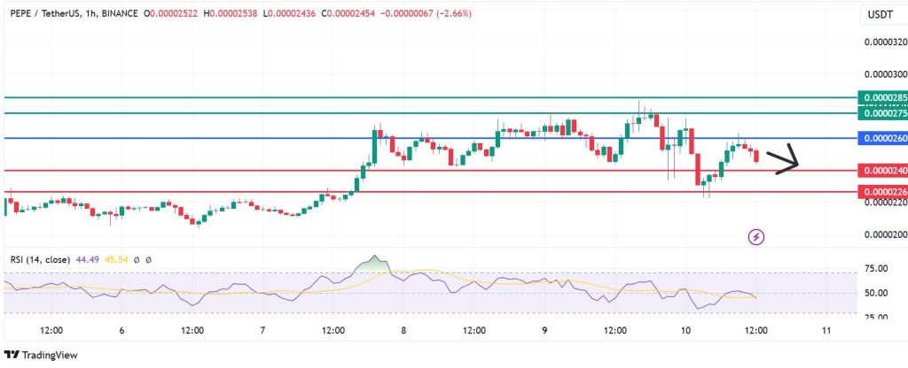 PEPE price pivots at $0.0000260, and the sellers will be in control if resistance persists at that level. Otherwise, a break above that level will swing the momentum towards the upside.