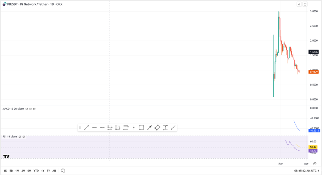 The token, which briefly soared above $3 in early March, has since given up more than 65% of its gains, reflecting fading momentum and growing skepticism about its long-term tokenomics. Despite its vocal community, Pi remains unlisted on major exchanges, and current prices are based on speculative IOU contracts, adding further risk for retail buyers.